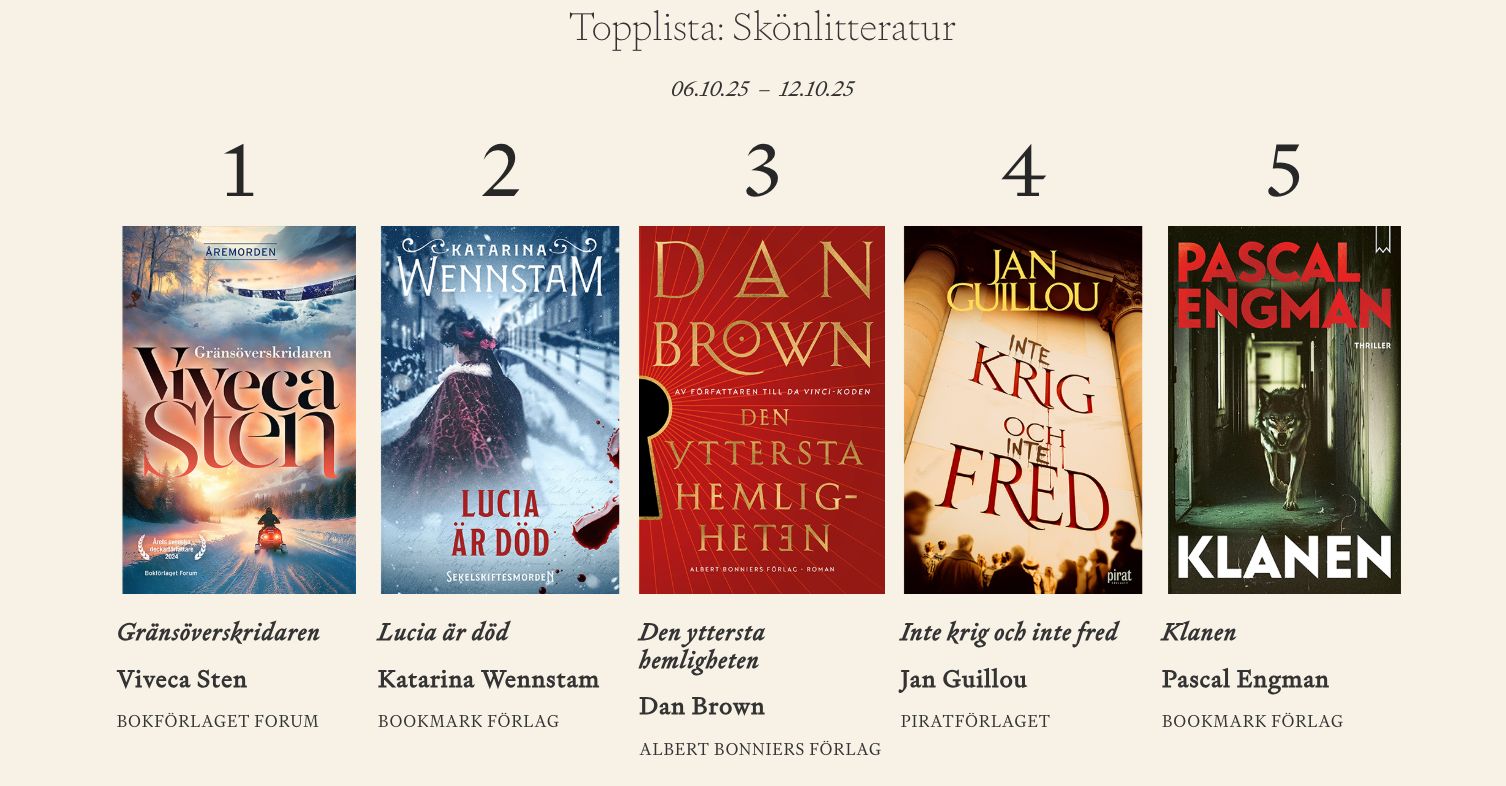 Viveca Sten’s latest novel, Hidden Borders, has reached No. 1 on the Swedish Bestselling Fiction List and tops the charts the same week as publication!